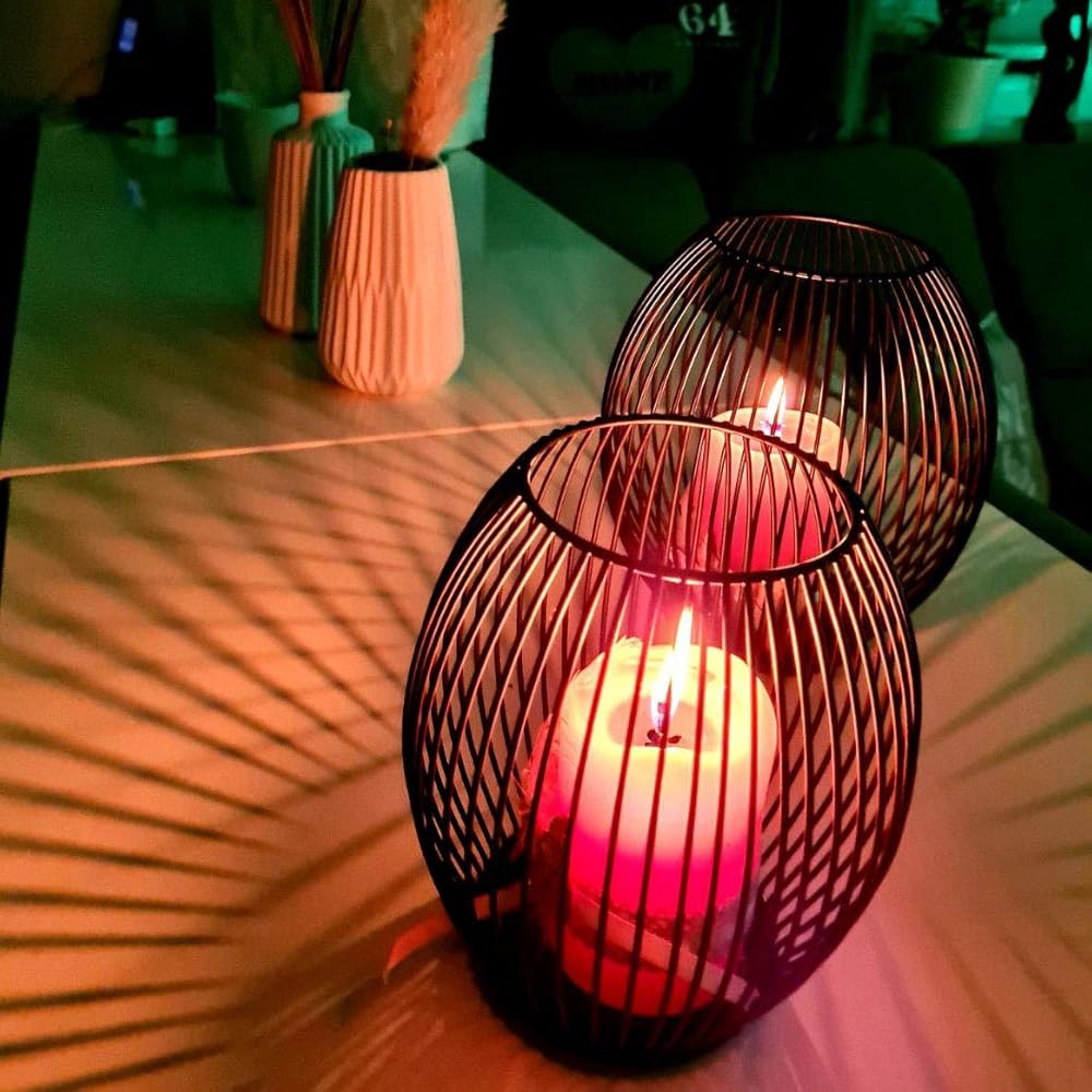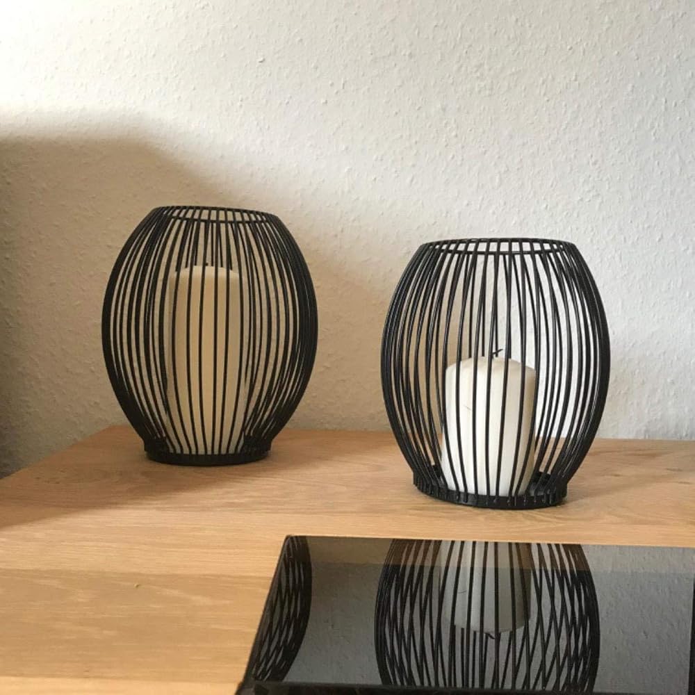 - Iron wire tea light candle case, black color