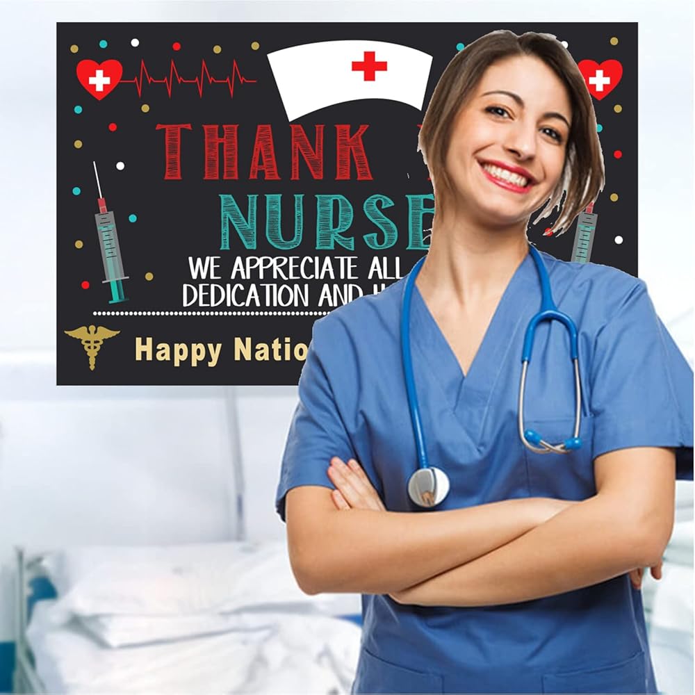 Size - The nurse appreciation week backdrop measures 160 x 100 cm/ 63 x 39 inch, it is large enough for celebration international nurse week party decoration and for photography at your party.