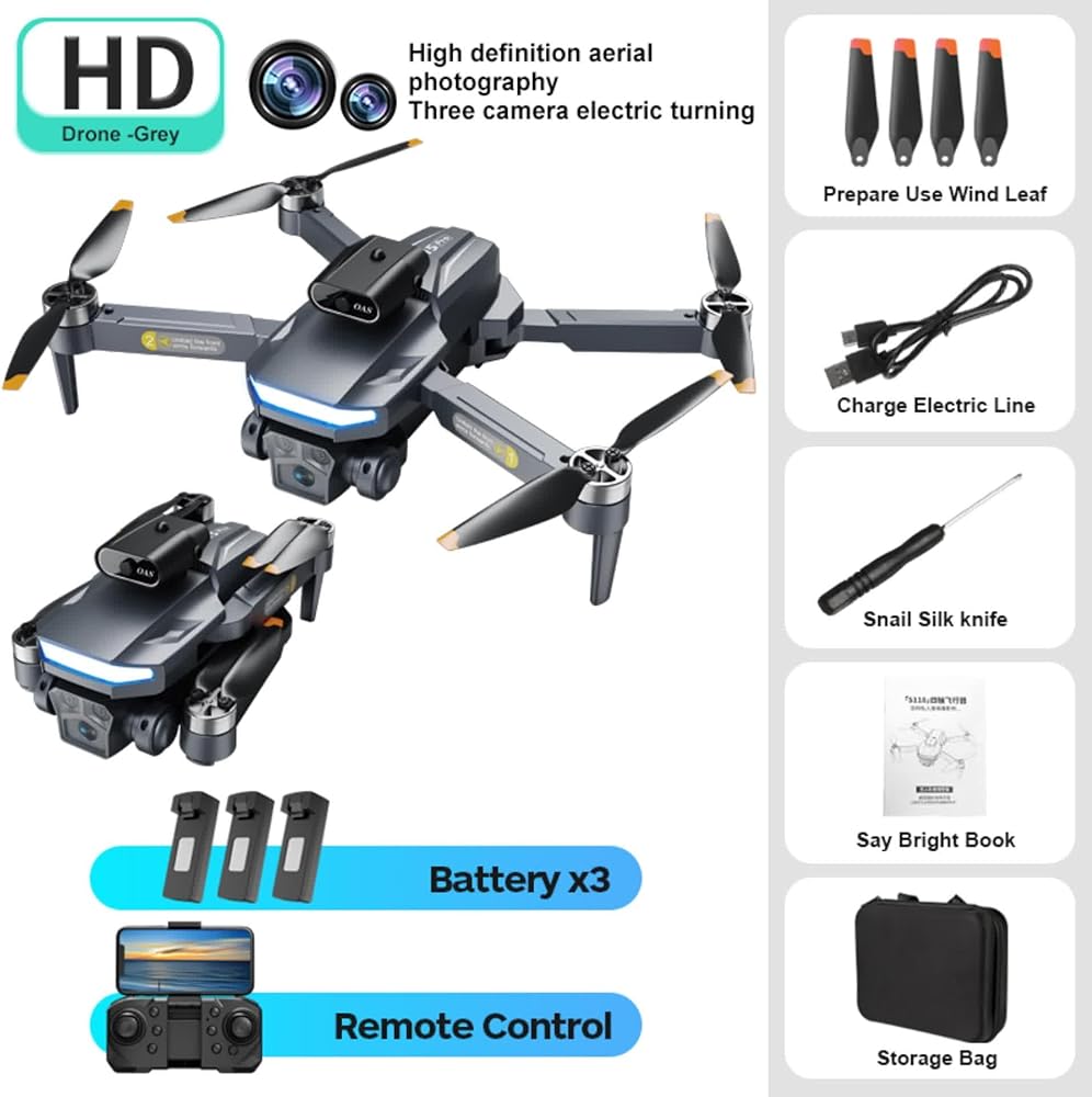 وضع التدفق البصري للطائرة بدون طيار HOTOSYY، تعديل كهربائي، تجنب عوائق الكاميرا الثلاثة، محرك بدون فرش، طائرة بدون طيار للكاميرا الرمادية، مناسبة للمبتدئين والكبار (ثلاث بطاريات)