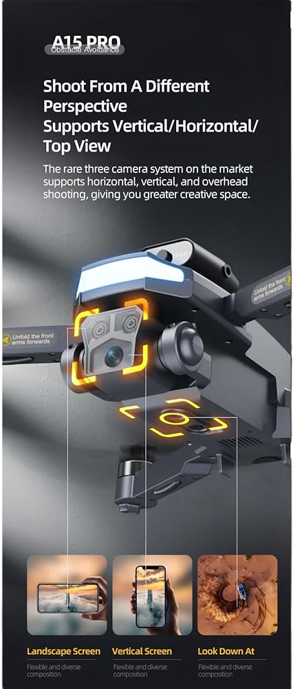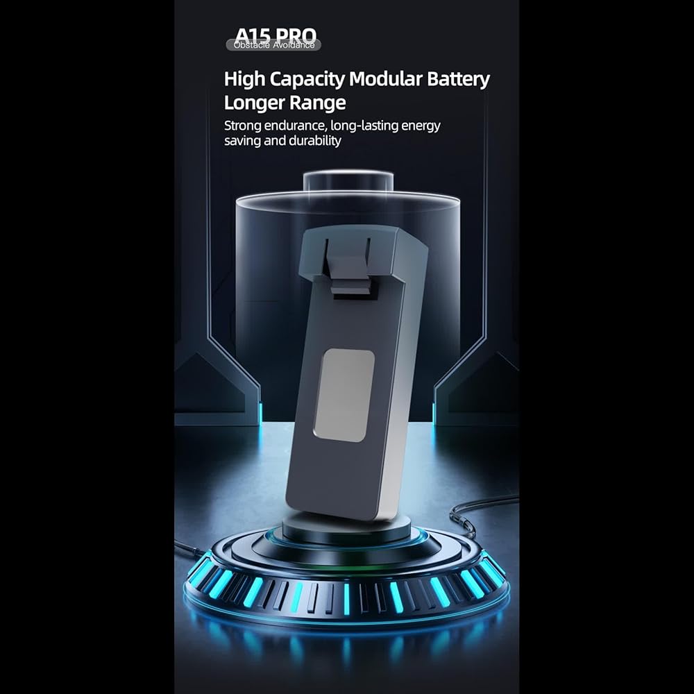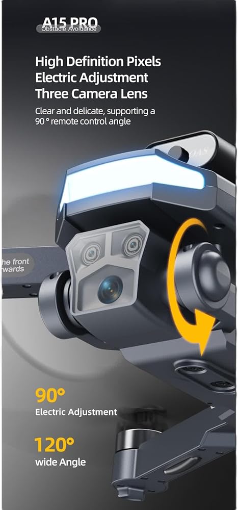 طائرة بدون طيار A15 مع كاميرا، تجنب عوائق الليزر 360 درجة، مما يوفر لك مسارًا أماميًا واضحًا، وإدراكًا شاملاً، وتجنب العوائق الذكية، بكسلات عالية الوضوح، ثلاث كاميرات قابلة للتعديل كهربائيًا، واضحة وحساسة، تدعم زاوية التحكم عن بعد 90 درجة، 120 درجة زاوية واسعة
