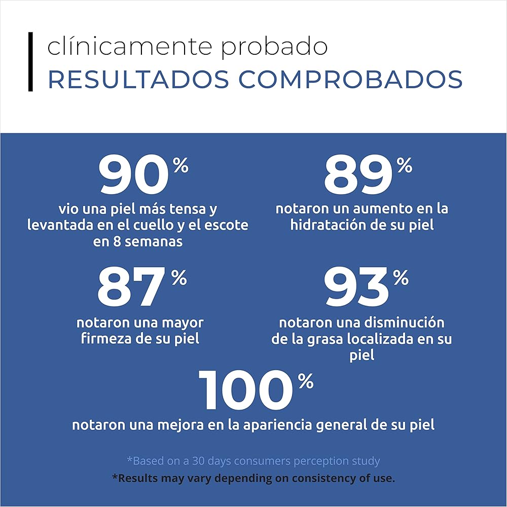 يقلل من الذقن المزدوجة: يقلل كريم الرقبة مزدوج الذقن من ظهور الذقن المزدوجة ويعيد محيط الرقبة العلوي. بعد ثمانية أسابيع فقط، أظهر 90% من المستخدمين بشرة مشدودة وأكثر رفعًا على الرقبة وأعلى الصدر.