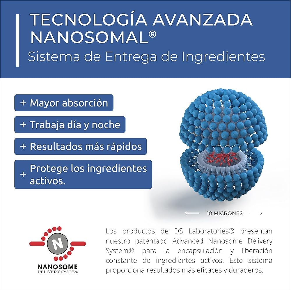 تقنية Nanosom: تتميز تركيبات DS لابراتوريز بتقنية Nanosome الخاصة بنا. تسمح هذه التقنية المستخدمة في التغليف بالإفراج المستمر للمكونات النشطة مما يخلق فعالية أعلى مع نتائج تدوم طويلاً.