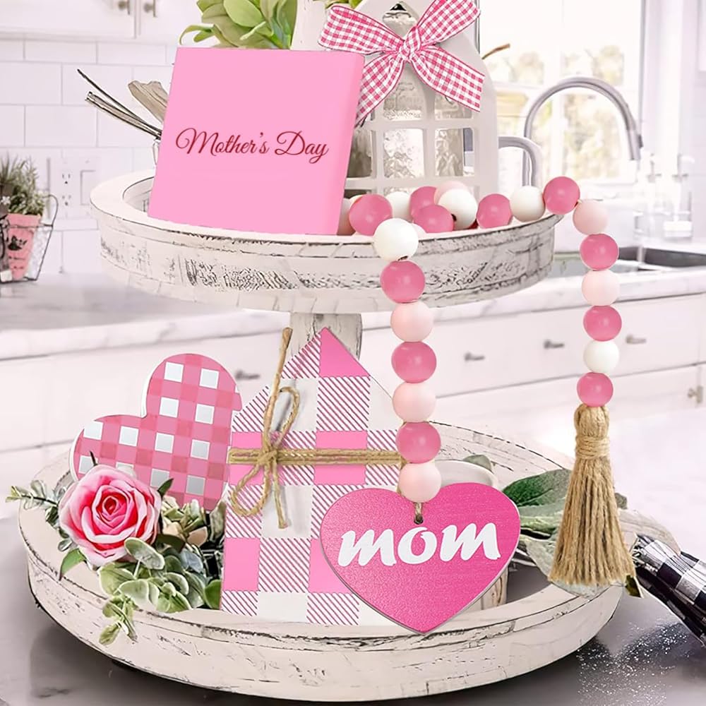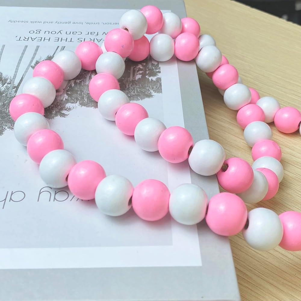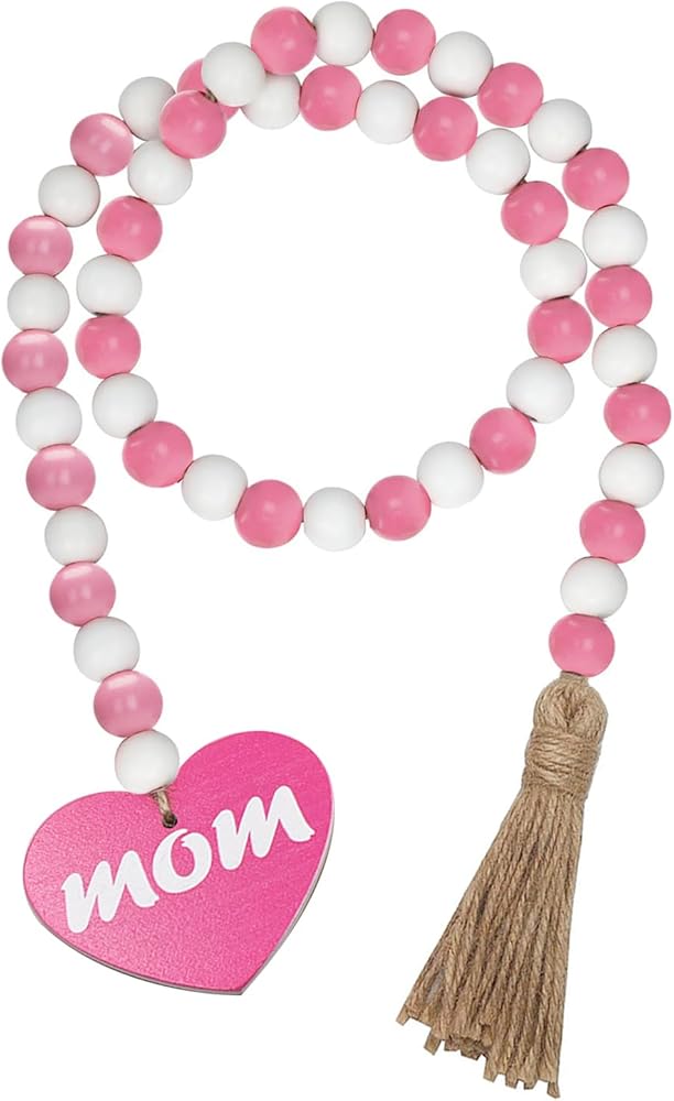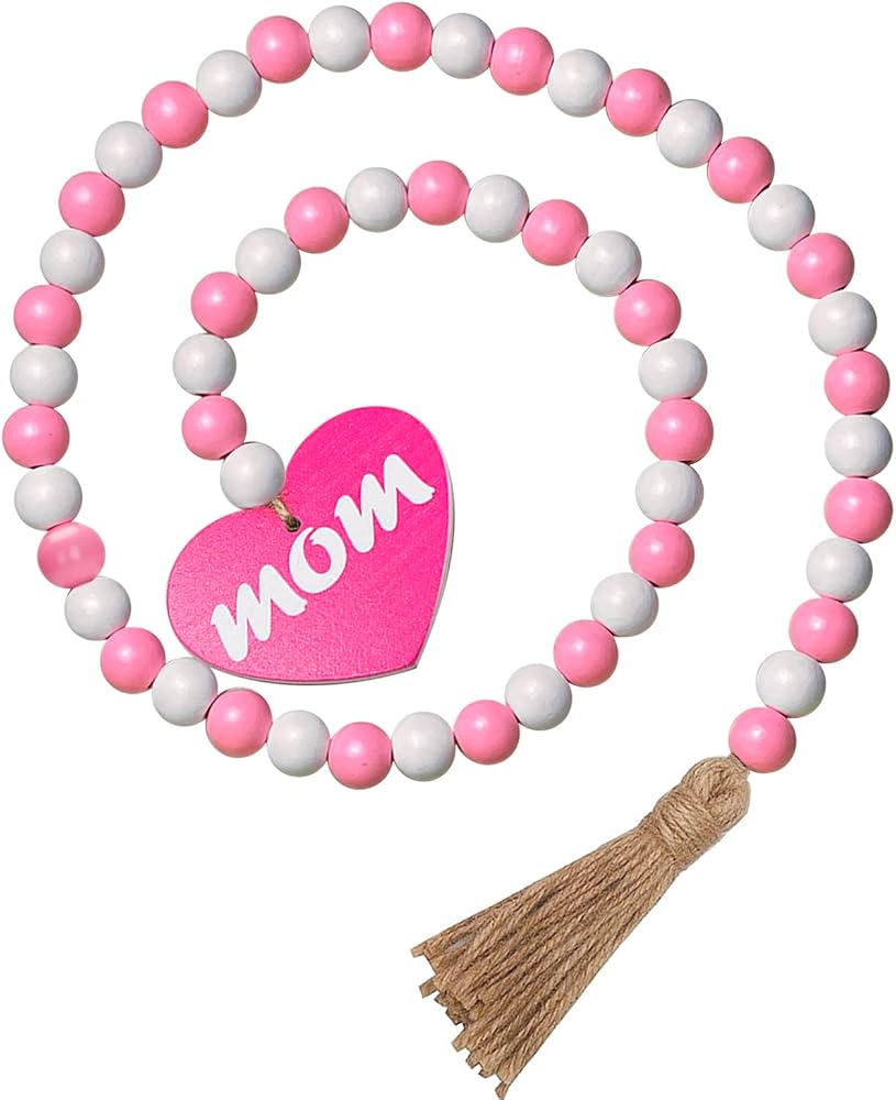 【Unique Design】Our natural Mother's Day wood bead garland comes with rustic tassels and wooden heart-shaped pendants, pink and white wood beads, MOM wood decoration, which is in line with the atmosphere of sweet decor. Also a nice gift for your mom.