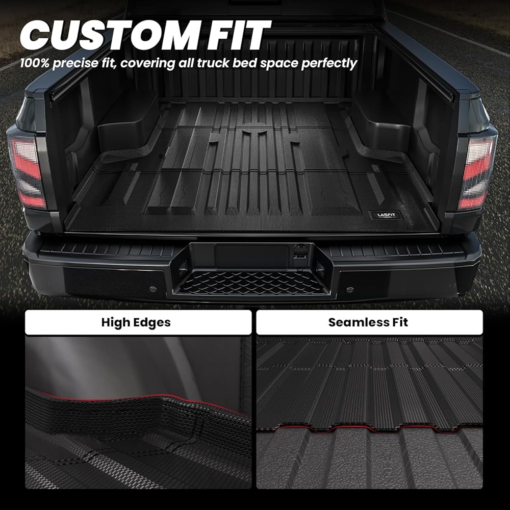 سجادة سرير LASFIT لنيسان تيتان 2024 2023 2022 2021 2020-2004 سجادة سرير الشاحنة، حماية من جميع الأحوال الجوية 5.6 قدم سجادة سرير مخصصة تناسب TPE بطانة سرير شديدة التحمل لـ 2024-2004 Titan Crew Cab Pickup Bed Mat