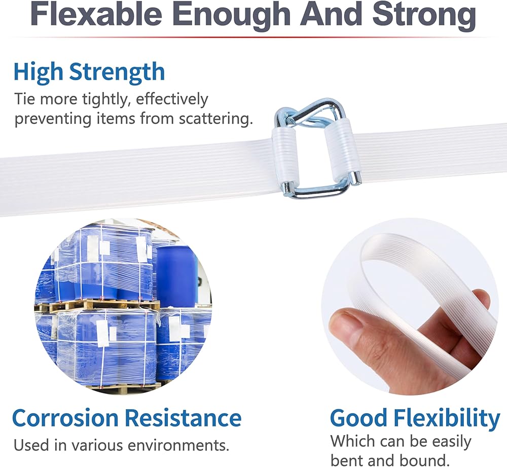 📦 قوي ومتين - حزام من البوليستر والبولي بروبلين وإبزيم فولاذي قابل للتعديل يوفر قوة شد ومتانة كافية، وتأكد من عدم سهولة كسر الحزام، ويصل إلى القوة حوالي 2200 رطل (1000 كجم).