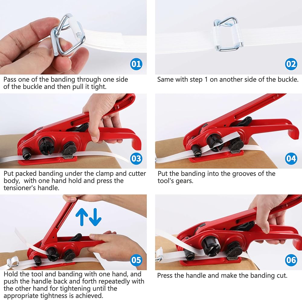 📦 سهل الاستخدام وقابل لإعادة الاستخدام - سهل الاستخدام مع وزن خفيف وقابل لإعادة الاستخدام لحزام البوليستر والبولي بروبيلين والأبازيم الفولاذية.