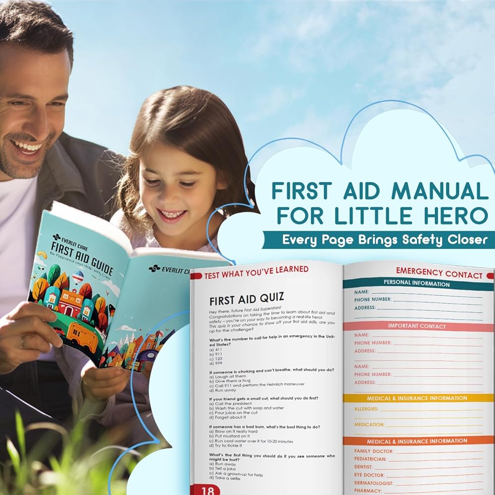 حزمة الإنقاذ EVERLIT | مجموعة الإسعافات الأولية للأطفال | 200 من اللوازم الطبية في حقيبة تخزين مدمجة للمنزل والسيارة والسفر والتخييم والمغامرة | هدية مع أساسيات سلامة الأطفال الملائمة للسفر (التخييم)