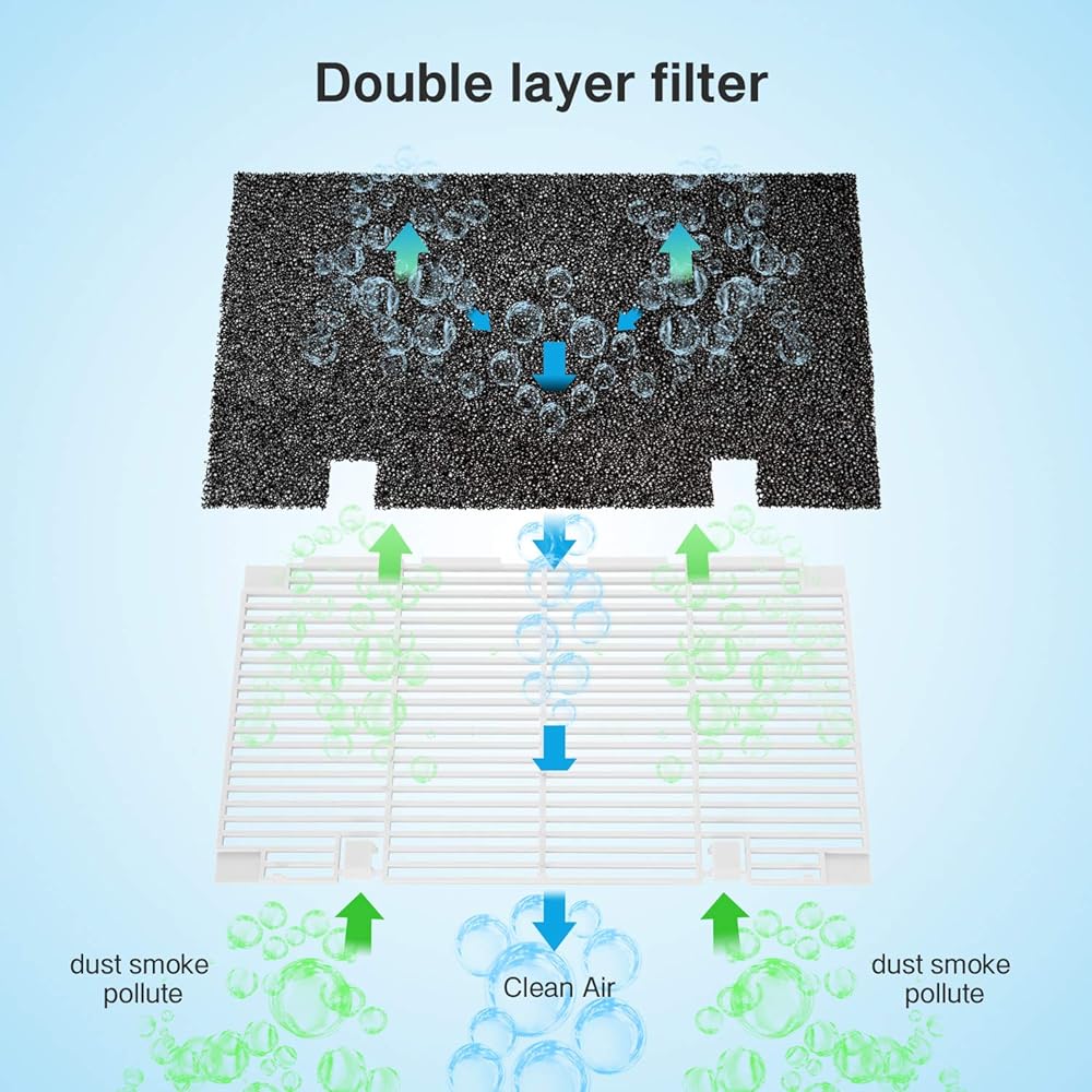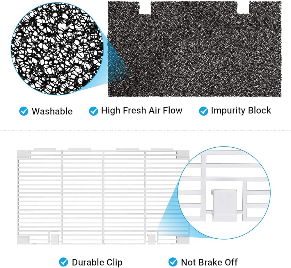 • [سهلة التنظيف] قم بفك الشبكة لأسفل ونظفها بالماء وفرشاة ناعمة. اشطف المرشحات القابلة للغسل والقابلة لإعادة الاستخدام عدة مرات.
