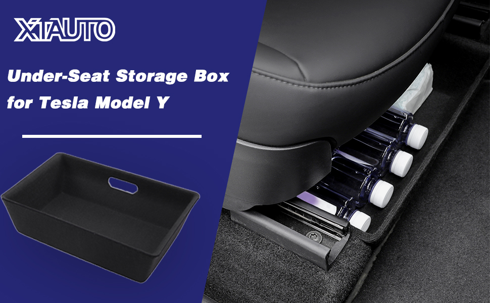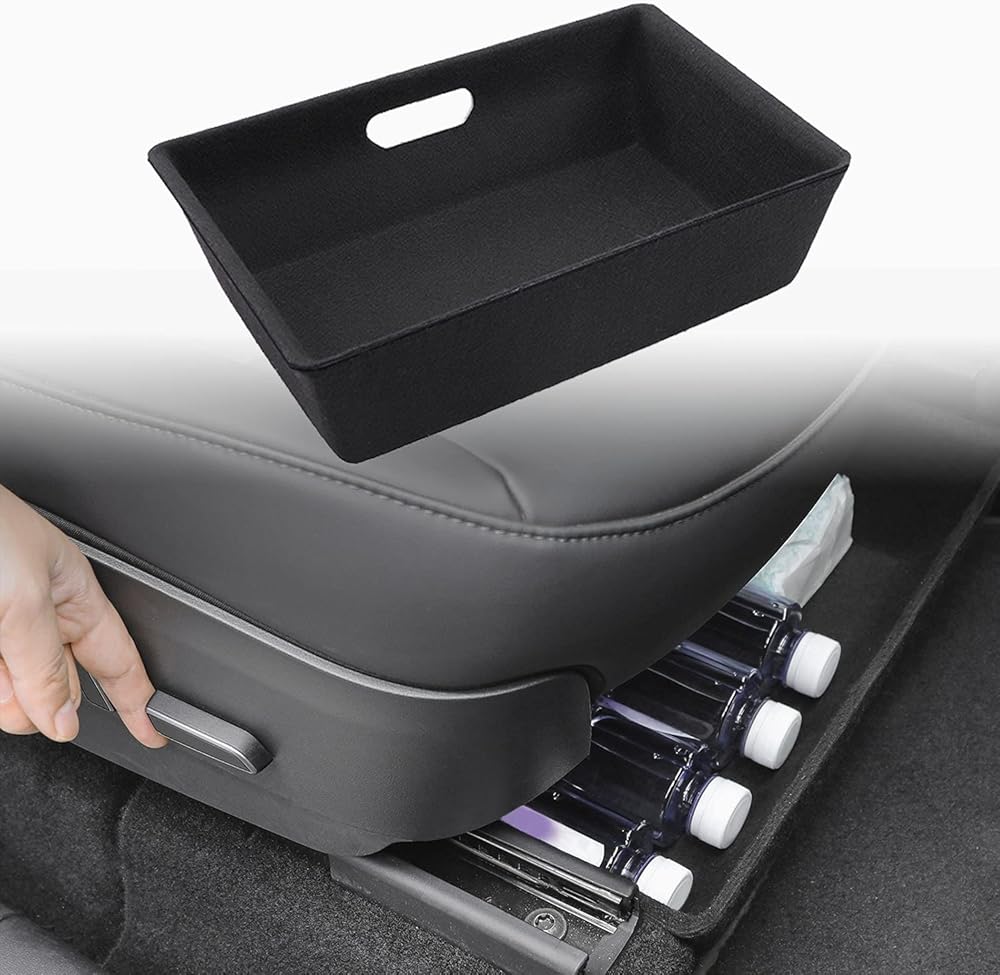 صندوق تخزين XTAUTO تحت المقعد متوافق مع 2016-2023 Tesla Model Y، صينية تنظيم مخفية تحت المقعد، حاوية درج مكعب، ملحقات Tesla Model Y، نسيج لباد مزدوج الجوانب (صينية واحدة فقط)