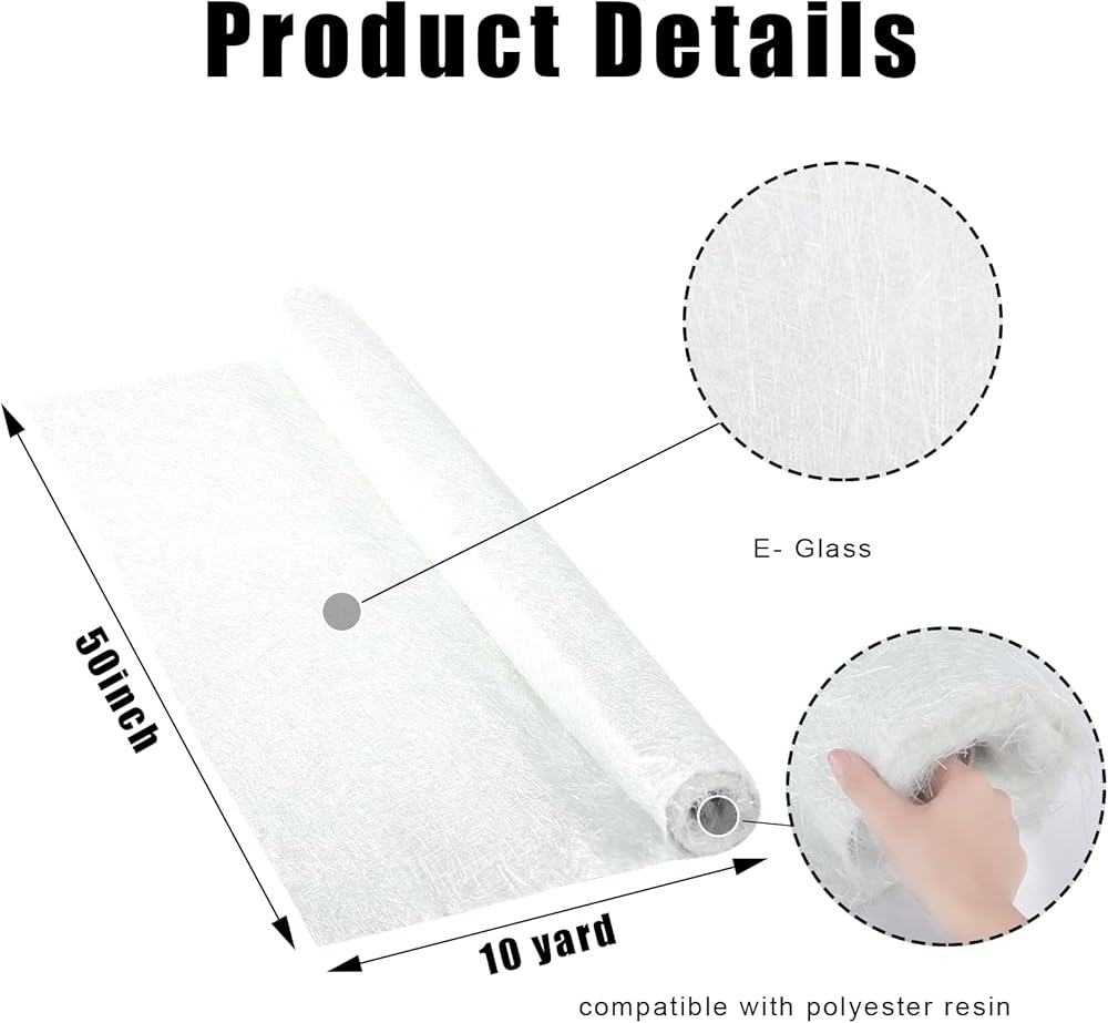• Quantities for Your Needs: packaged with 1 roll of fiberglass chopped strand mat cloth, the size about 10 yards X 50" wide; 3 pcs fiberglass roller tools kits; The size of the tool can be seen in the picture