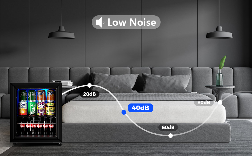 ضوضاء منخفضة: ثلاجة المشروبات مجهزة بنظام تبريد متطور للحفاظ على مشروبك في درجة الحرارة المناسبة دون إحداث ضوضاء. تجلب لك بيئة هادئة. يضمن نظام التبريد السريع الموفر للطاقة والمحدث مذاق الوجبات الخفيفة والمشروبات.
