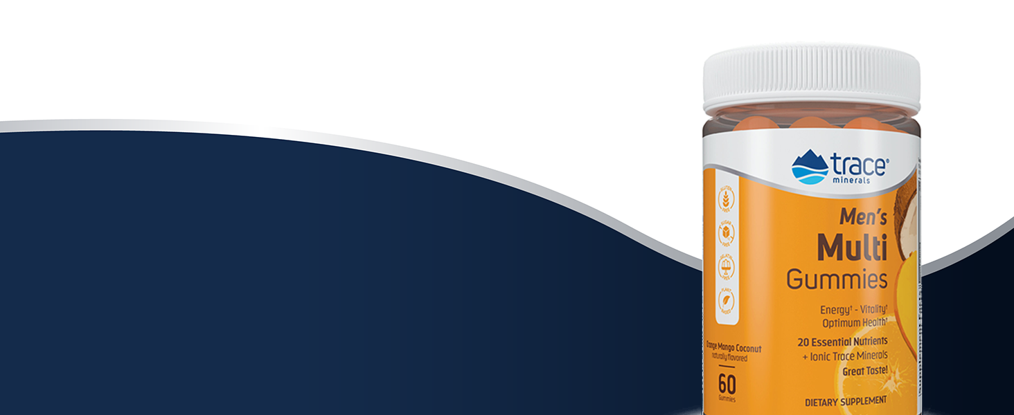 علكات متعددة للرجال من Trace Minerals | خالي من السكر مع أكثر من 20 فيتامين وأيوني لأقصى قدر من الامتصاص | نكهة البرتقال والمانجو وجوز الهند اللذيذة | 60 عدد