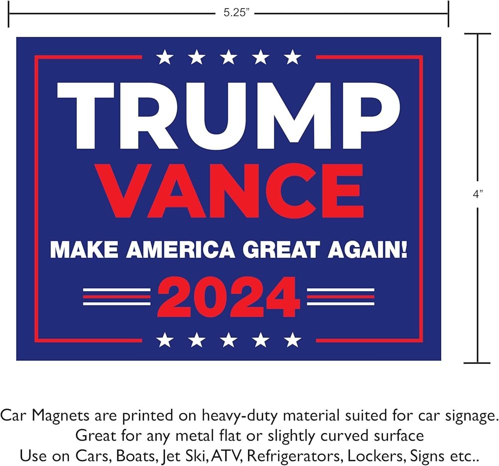 مغناطيس سيارة ترامب فانس | ترامب يجعل أمريكا عظيمة مرة أخرى ملصق مغناطيسي | ترامب فانس 2024 MAGA Magnet | مغناطيس سيارة مقاوم للطقس شديد التحمل 4x5.25 30 مل - قطعة واحدة