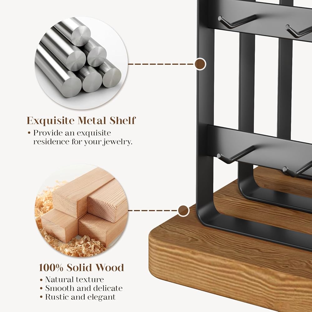 【Wood & Matte Metal Earring Display Stand】: Made of 100% toasted pine wood and matte metal, the rustic wooden display stand with farmhouse style is perfect for displaying your jewelry.
