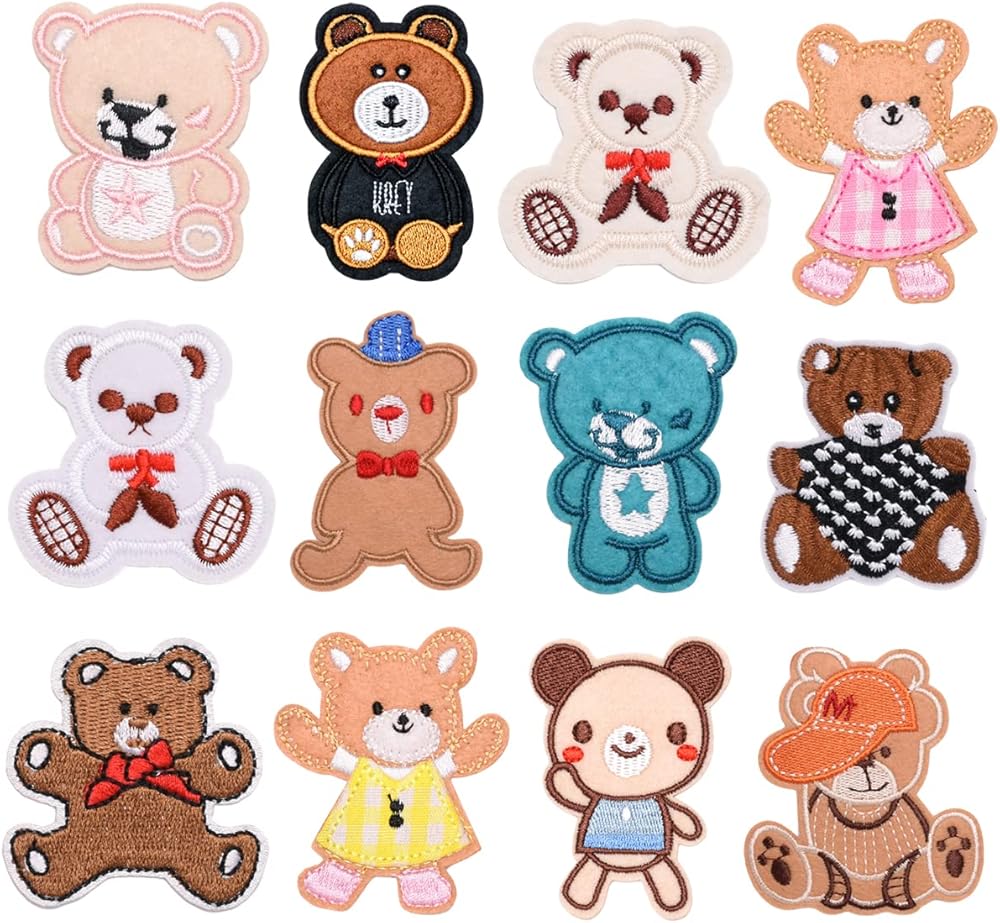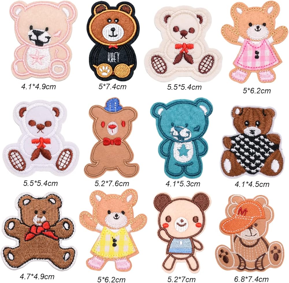 • ▼Package Included: 12 pcs cute bear embroidered appliques, each style has 1 pcs. Size as the picture shows.