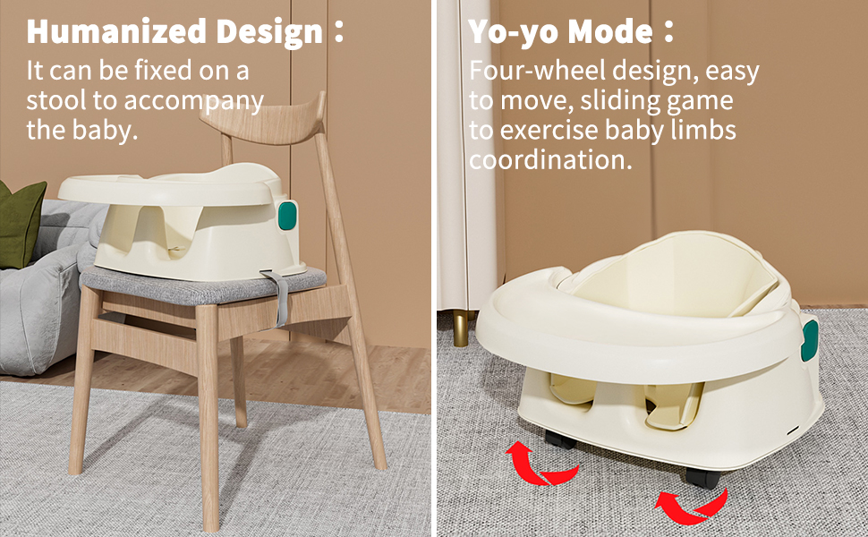 【متعدد الوظائف】يساعد الكرسي العالي طفلك على اتخاذ الخطوة الأولى نحو تناول الطعام المستقل، ولكن وظيفته تتجاوز ذلك. يمكن أيضًا تثبيتها على مقعد أو في وضع اليويو، مما يجعلها مثالية لوقت اللعب ووقت الهدوء.