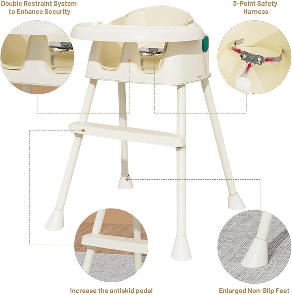 【مواد صديقة للبيئة وآمنة】مصنوعة من مواد صالحة للطعام وآمنة على الأطفال، الكرسي المرتفع متعدد الوظائف الخاص بنا غير سام وعديم الرائحة، وهو قوي وقوي بما يكفي لتحمل اختبار الزمن.