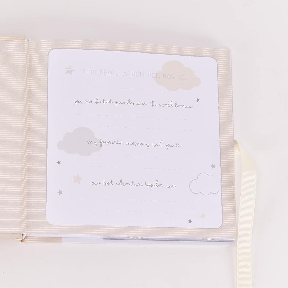 Keep your precious memories safe with this Magical Beginnings Photo Album, featuring a beautiful pencil illustration of Winnie the Pooh and Piglet and gold glitter lettering. Store up to fifty 4" x 6" photos in the album and personalise the title page with a special message. Brighten up your Grandma's every day with a special-inspired touch, complete with a cream bow closure. Perfect for any fan, this photo album is sure to bring a little magic to your treasured memories. Total product dimensions are: Height - 6.9", Width - 7.5", Depth - 1.0".