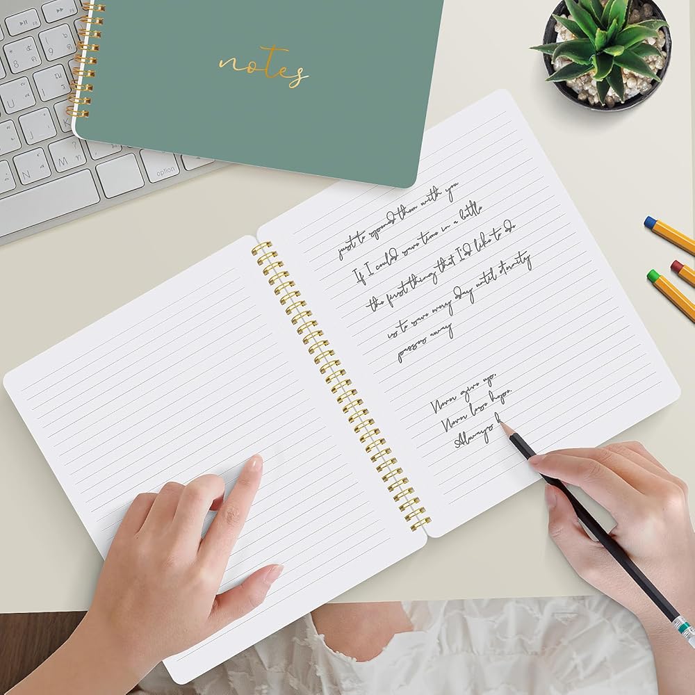 Sturdy Spiral Bound: Our Spiral Journals size 10.6" x 8.5". The sturdy but flexible spiral binding ensures that the notebook can lay flat when opened, making it easy to write on both sides of the page without any hassle. Our notebook is an essential tool for staying productive and efficient.