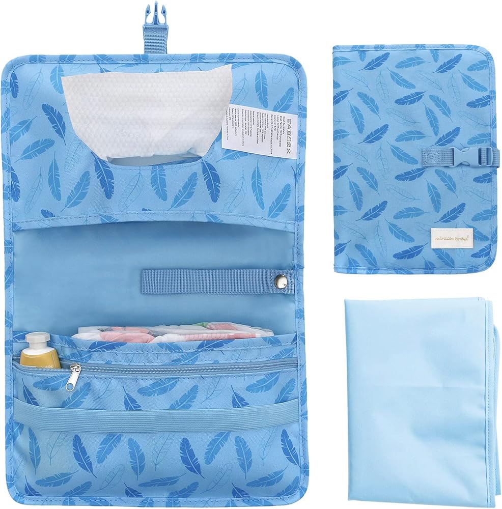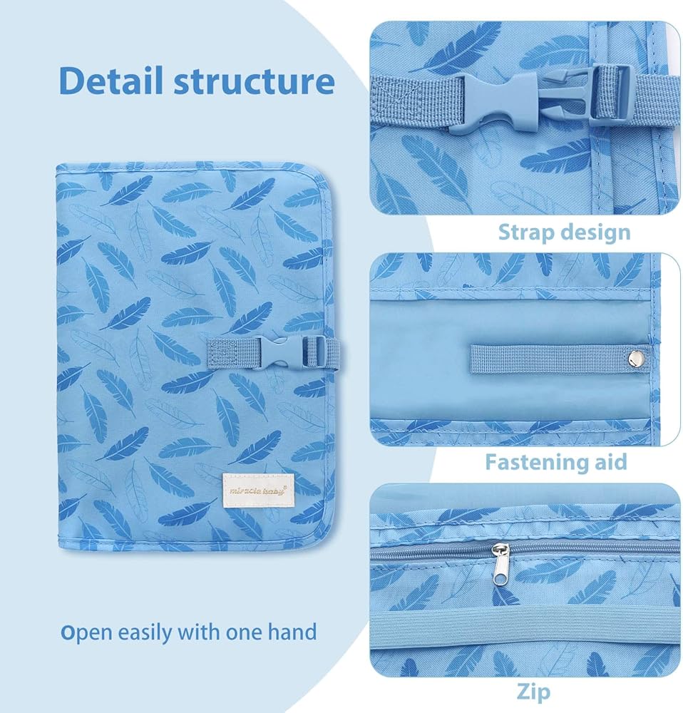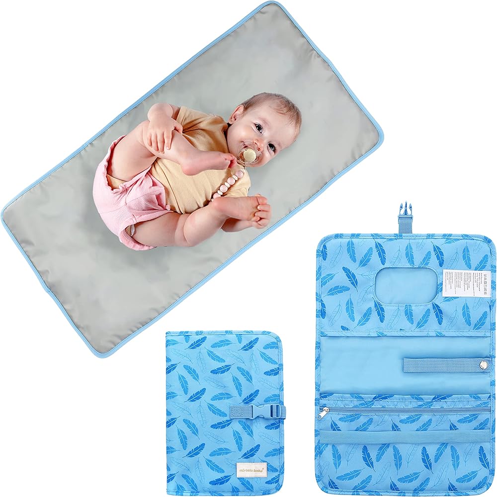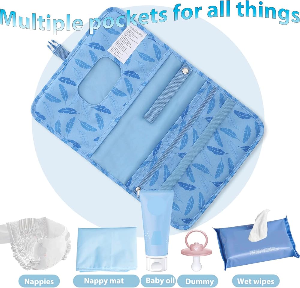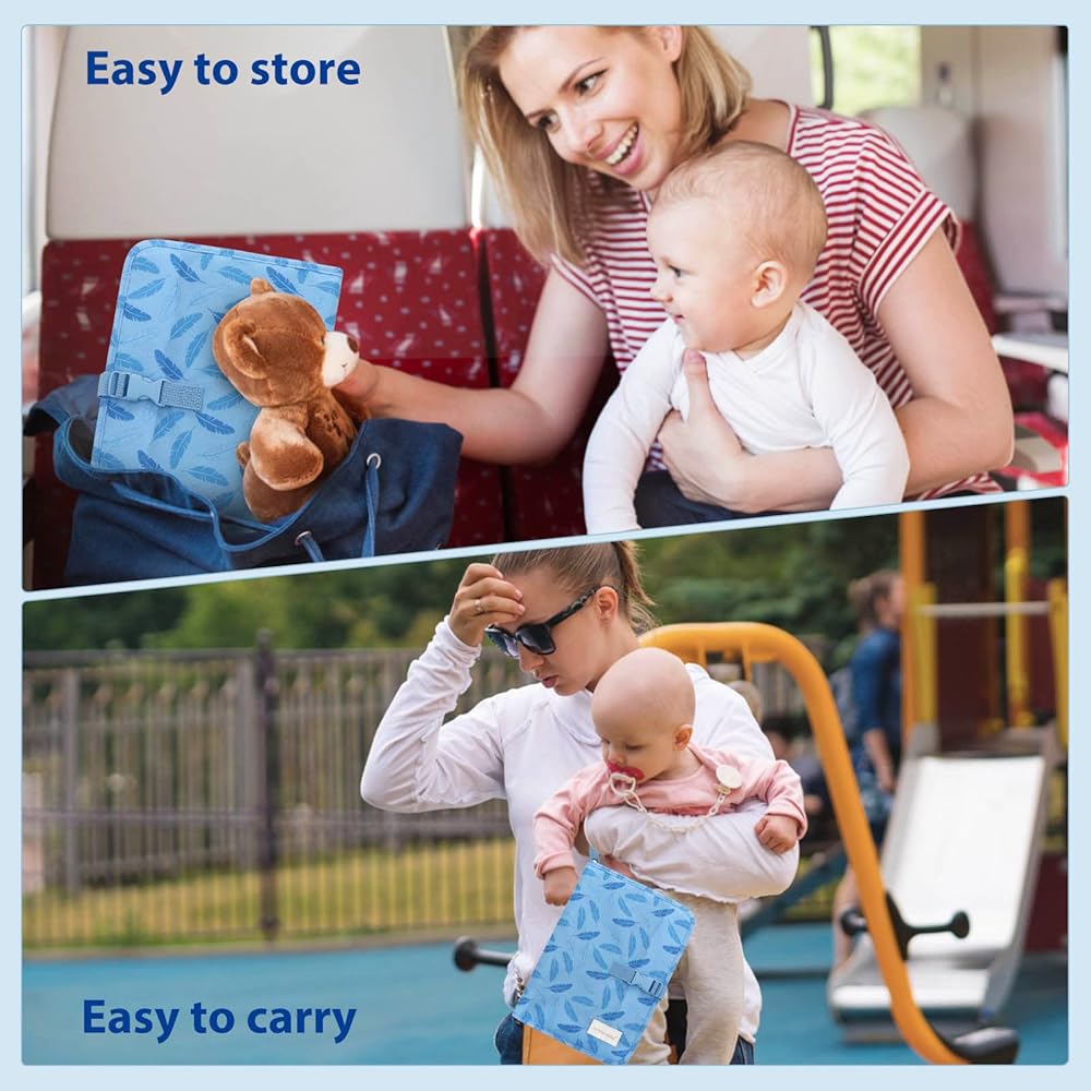 وسادة تغيير الحفاضات المحمولة، 27.55 * 13.78 بوصة، سجادة تغيير حفاضات قابلة للطي ومقاومة للماء، محطة تغيير الحفاضات، وسادة تغيير الحفاضات أثناء السفر، حقيبة محمولة لتنظيم الحفاضات بسحاب (أزرق)