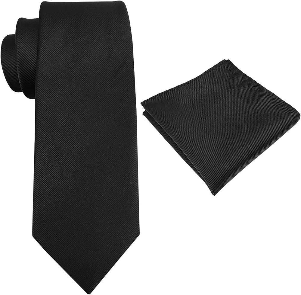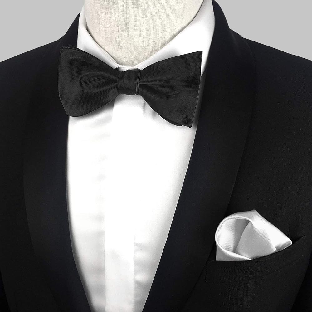 مجموعة ربطات عنق رجالي من KOOELLE وربطة عنق سوداء ومجموعة مربعة للجيب ومجموعة ربطات عنق حريرية فاخرة للرجال ومجموعة مربعة للجيب (ربطة عنق سوداء + منديل أبيض)