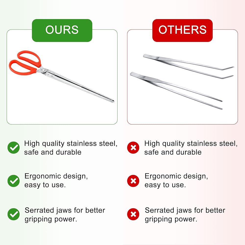مادة مقاومة للصدأ: مصنوعة من الفولاذ المقاوم للصدأ عالي الجودة، ملقط تغذية زواحف الثعبان الخاص بنا مقاوم للصدأ، ومقاوم للتشوه، قوي ومتين، ويحافظ على جودة جيدة حتى إذا تم استخدامه لفترة طويلة في البيئات الرطبة مثل أحواض السمك.