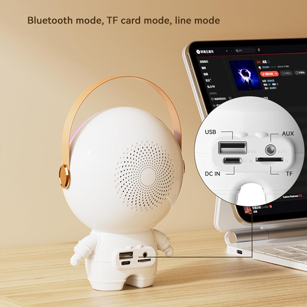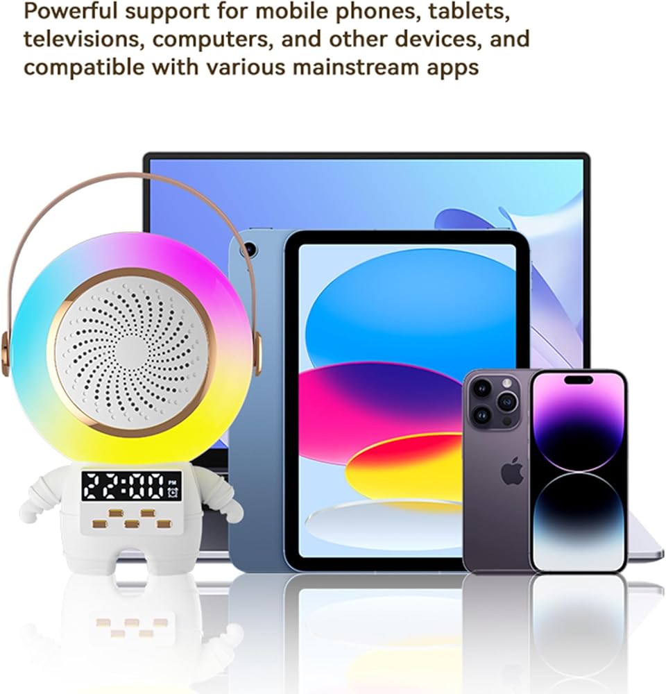 آلة كاريوكي رائد الفضاء AWESQCQ مع ميكروفونين لاسلكيين، مكبر صوت بلوتوث محمول مع ساعة منبه، إضاءة محيطة، تدعم بطاقة TF/USB، مدخل AUX، FM، REC، TWS للبالغين والأطفال والحفلات المنزلية