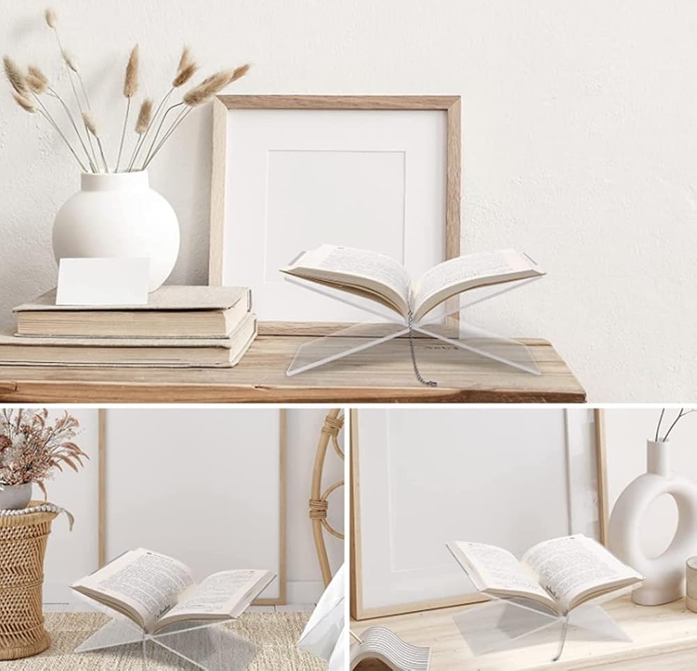 It is suitable to hold small, medium, or even large sizes of books. An acrylic open book display stand is great for students, musicians, and cooks in the kitchen, displaying books, photos, plates, diplomas, and craft projects.