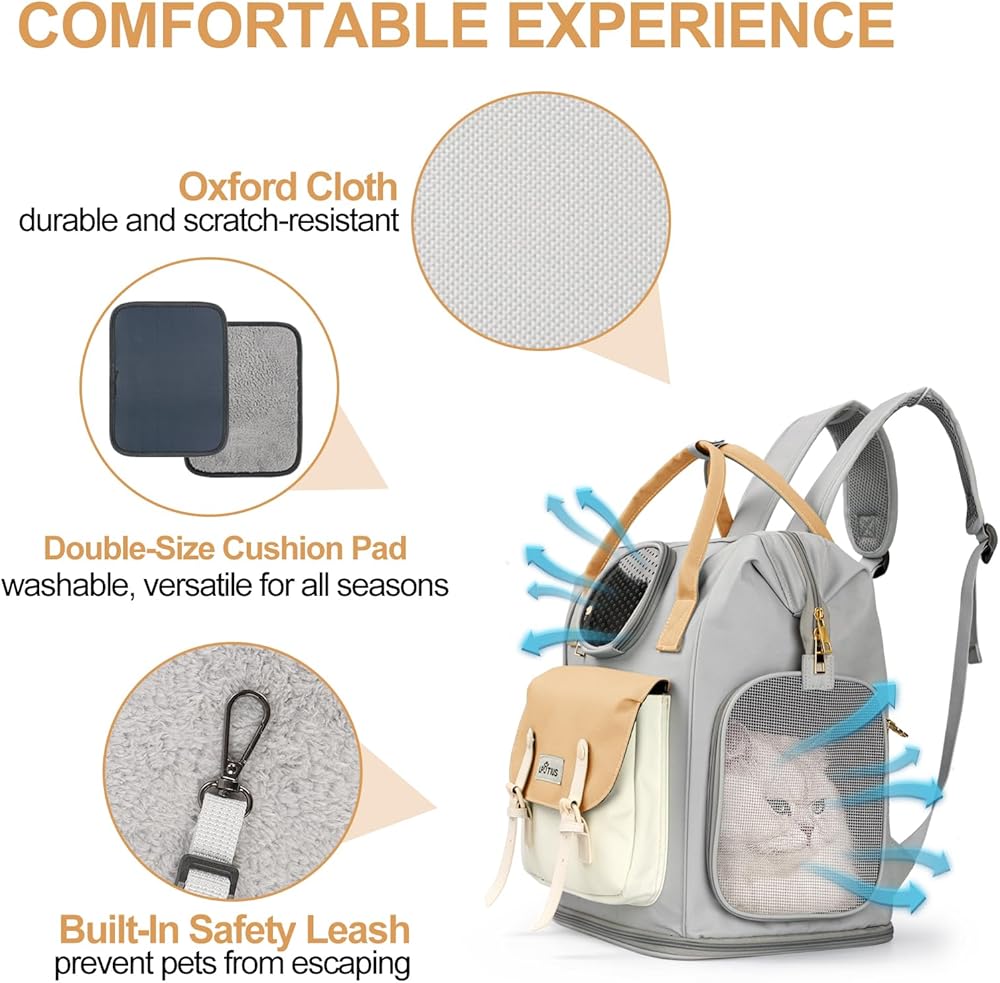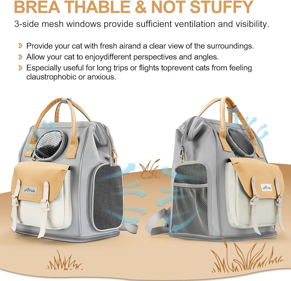 🐾【تهوية رائعة】مزودة بنوافذ شبكية في 3 جوانب من حاملات حقائب الظهر للقطط، مما يضمن تهوية ممتازة وأقصى قدر من التهوية والرؤية لمراقبة حركة حيواناتك الأليفة، وهو مثالي للمغامرات الخارجية.
