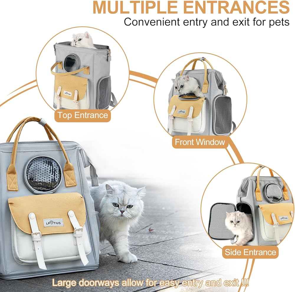 🐾【حافظ على راحة حيوانك الأليف】توفر حقيبة ظهر الحيوانات الأليفة هذه طرقًا متعددة للسماح لحيوانك الأليف بالدخول والخروج بسهولة، ويتم تضمين حصيرة مريحة قابلة للإزالة للحفاظ على راحة حيوانك الأليف، مما يرفع من تجربة استخدام حيوانك الأليف أثناء كل خروج. يمكن فتح النافذة الجانبية لتمكنك من راحة حيوانك الأليف عندما يشعر بالتوتر. سيوفر مقود الأمان المدمج أمانًا إضافيًا عند استخدام هذه الميزة.
