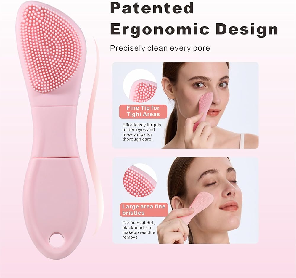 • مقبض مريح: مصمم هندسيًا، مقبض فرشاة الوجه الخاص بنا سهل الإمساك. لا داعي للقلق بشأن انزلاقها من يدك أثناء عملية الغسل. يوجد أيضًا فتحة مناسبة لتعليقها حتى تجف.