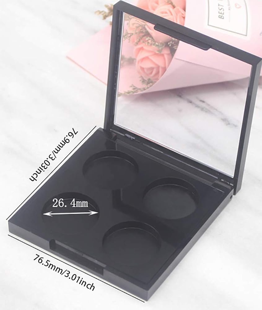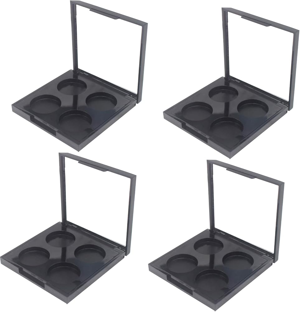 لوحة ظلال عيون من 5 قطع من BesYouSel، لوحة مكياج بلاستيكية فارغة، 4 شبكات، علبة ظلال عيون مستديرة مع مقالي بلاستيكية مستديرة 26 مم لصبغة ظلال العيون وأحمر الشفاه وبودرة خافي العيوب، أسود