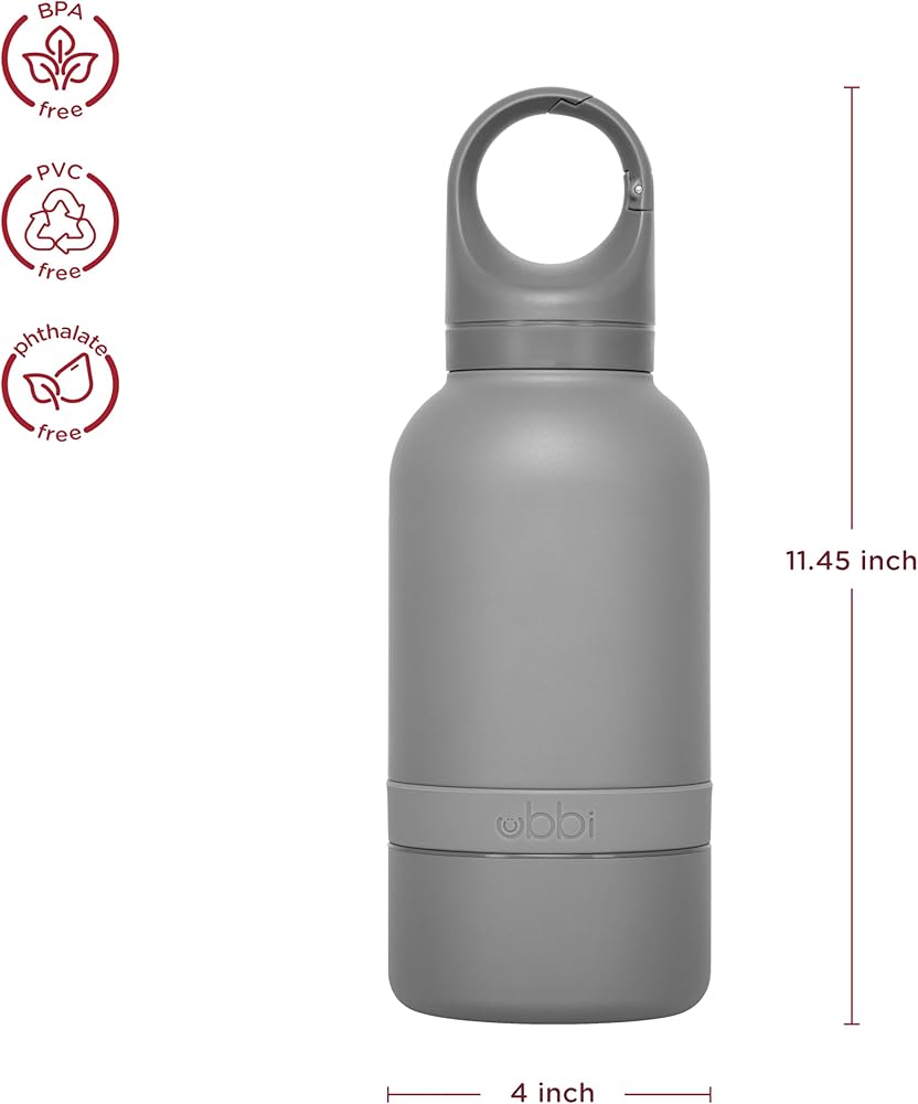 Introducing the Ubbi Pup and Me Water Bottle: a must-have, modern travel companion for you and your pup. Crafted using double wall vacuum insulated stainless steel, this bottle ensures that both you and your furry friend can enjoy refreshingly cold water, even on the warmest of adventures. Sleek, modern, and available in a range of vibrant colors including blue, green, yellow, and charcoal, the Ubbi Pup and Me Water Bottle combines style with functionality. Leak-proof, travel-friendly, and featuring a wide mouth opening for easy drinking and pouring, it's the perfect companion for all your outdoor escapades. Designed with your convenience in mind, the Ubbi Pup and Me Water Bottle features a cleverly integrated screw-on bowl at its base. Simply detach it for your dog to drink from, providing them with a convenient and hygienic way to quench their thirst wherever you roam. But that's not all – we've thoughtfully equipped this bottle with a versatile carabiner cap. Whether you're clipping it onto your backpack, leash, or using it as a convenient handle while on the move, staying hydrated has never been easier or more stylish. With a generous capacity of 32 oz/950 ml, you'll have plenty of water to go around. And when it's time to clean up, just toss it in the dishwasher for effortless maintenance. Get ready to embark on adventures with your dog like never before with the Ubbi Pup and Me Water Bottle.
