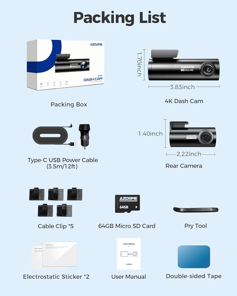 ضمان خالي من المتاعب: يتم تغطية كاميرا داش AZDOME بضمان لمدة 12 شهرًا ودعم فني مدى الحياة. لا تتردد في الاتصال بنا بخصوص أي مشاكل.