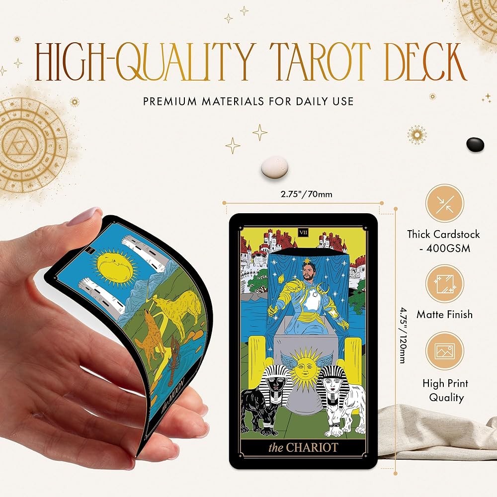 • هدية مدروسة: مثالية لك أو لأحبائك، سواء كنت تبحث عن أوراق التارو للمبتدئين أو ببساطة مفتونًا ببطاقات التارو الجميلة. مجموعة بطاقات التارو الجذابة هذه هي الرفيق المثالي في أي مناسبة