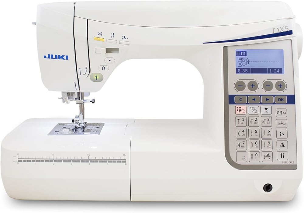 COMPACT SIZE SEWING MACHINE WITH CARRYING CASE: The Juki HZL-DX5 is an ideal traveling companion. It is lightweight, compact and always ready to go. The hard-shell carrying case is supplied standard with the machine to meet any of your travel needs. Your machine will be transported easily and securely to your next sewing destination.