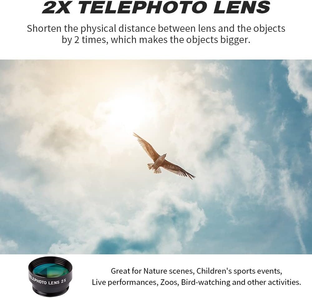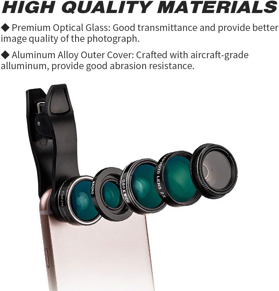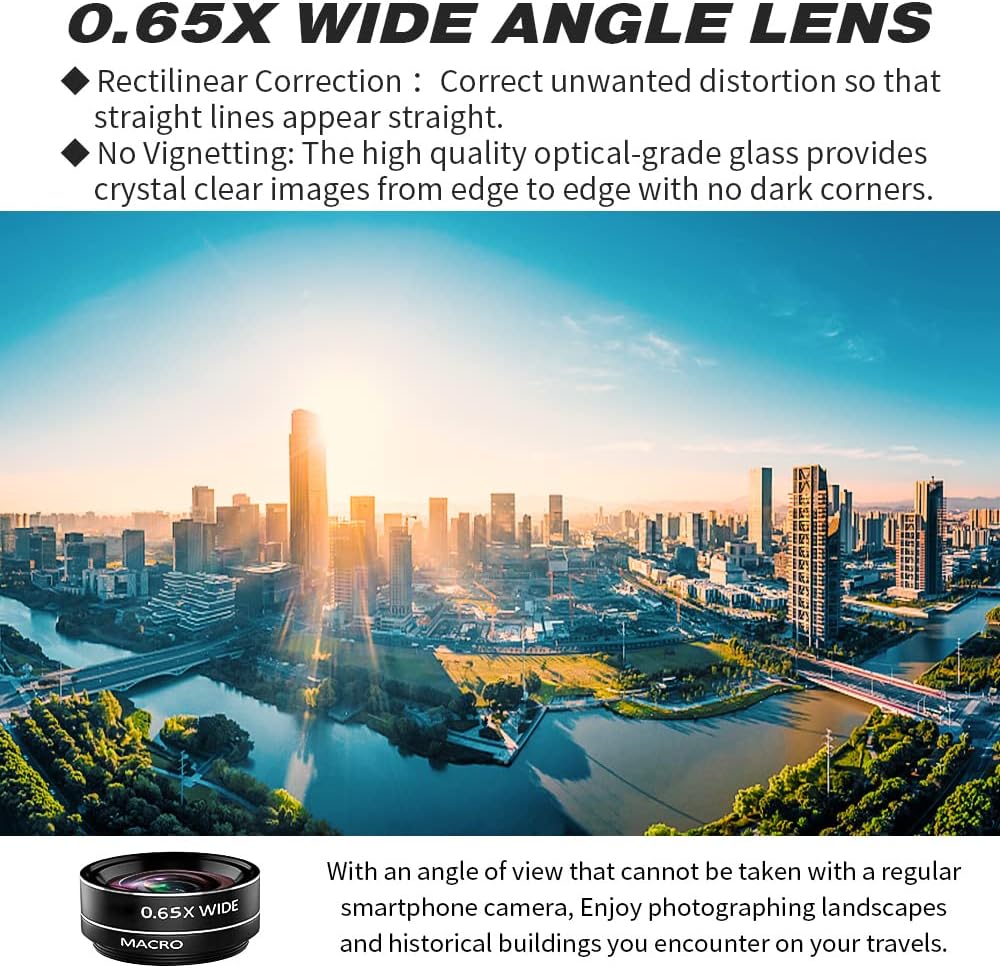 【عدسة بزاوية واسعة 0.5x】قم بتوسيع مجال الرؤية وتخيل المزيد من المناظر الطبيعية. التقط المزيد من الصور المذهلة للناس ومناظر السفر والمناظر الطبيعية والهندسة المعمارية والمزيد. مصنوع من الألومنيوم المستخدم في صناعة الطائرات والزجاج البصري الفاخر لضمان المتانة والوضوح. تعمل العدسات الزجاجية المطلية متعددة العناصر على تقليل الظلال والانعكاسات وتوهج العدسة وغيرها من الأعمال الفنية.