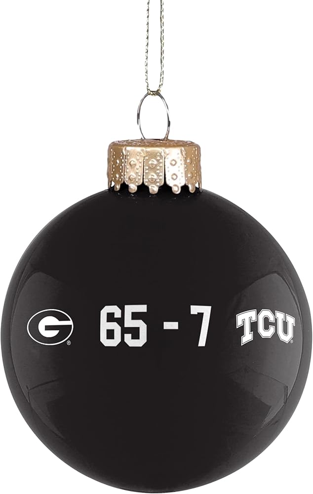 Hang these 2-SIDED Georgia Ornaments on your Xmas tree-and keep the celebration going! These glass ball Georgia National Championship ornaments stand approx 2 5/8" and ALL come adorned with HIGH QUALITY Print on both sides.