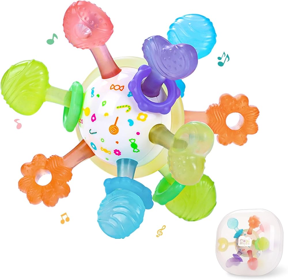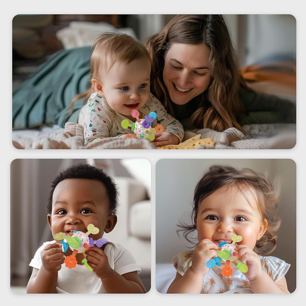 【آمن ومضمون】كن مطمئنًا بشأن السلامة! لعبة التسنين الخاصة بنا مصنوعة من السيليكون الآمن غذائيًا بنسبة 100%، عديمة الرائحة وخالية من مادة BPA. علاوة على ذلك، قمنا بإجراء اختبارات سحب صارمة لضمان عدم فقدان أي أجزاء أثناء مضغ طفلك. تم وضع الخرز الصغير بشكل آمن في الداخل، مما يسمح لطفلك بمضغه دون أي قلق.