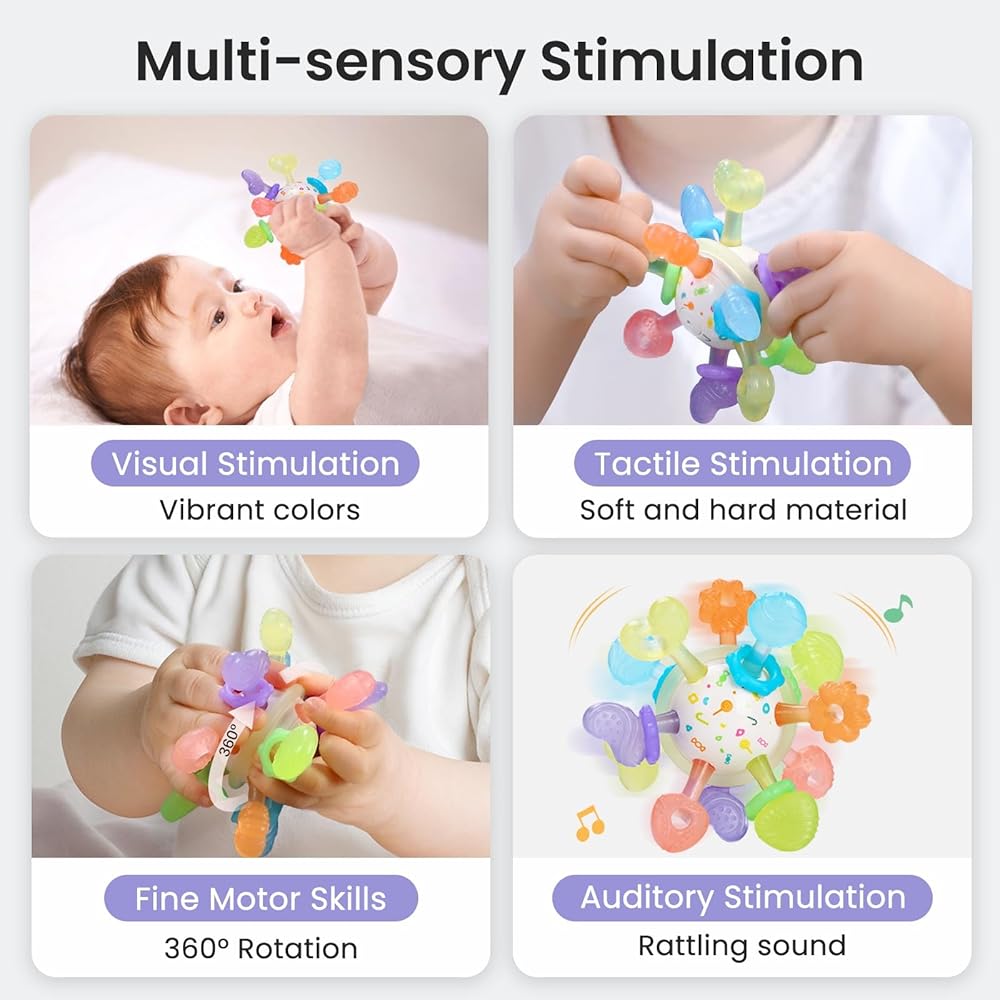 ألعاب التسنين للأطفال، كرة تسنين حسية متعددة، ألعاب تسنين للأطفال من مونتيسوري، حلقات تسنين من السيليكون للأطفال، لعبة مضغ للأطفال من عمر 0 إلى 12 شهرًا، خالية من مادة BPA