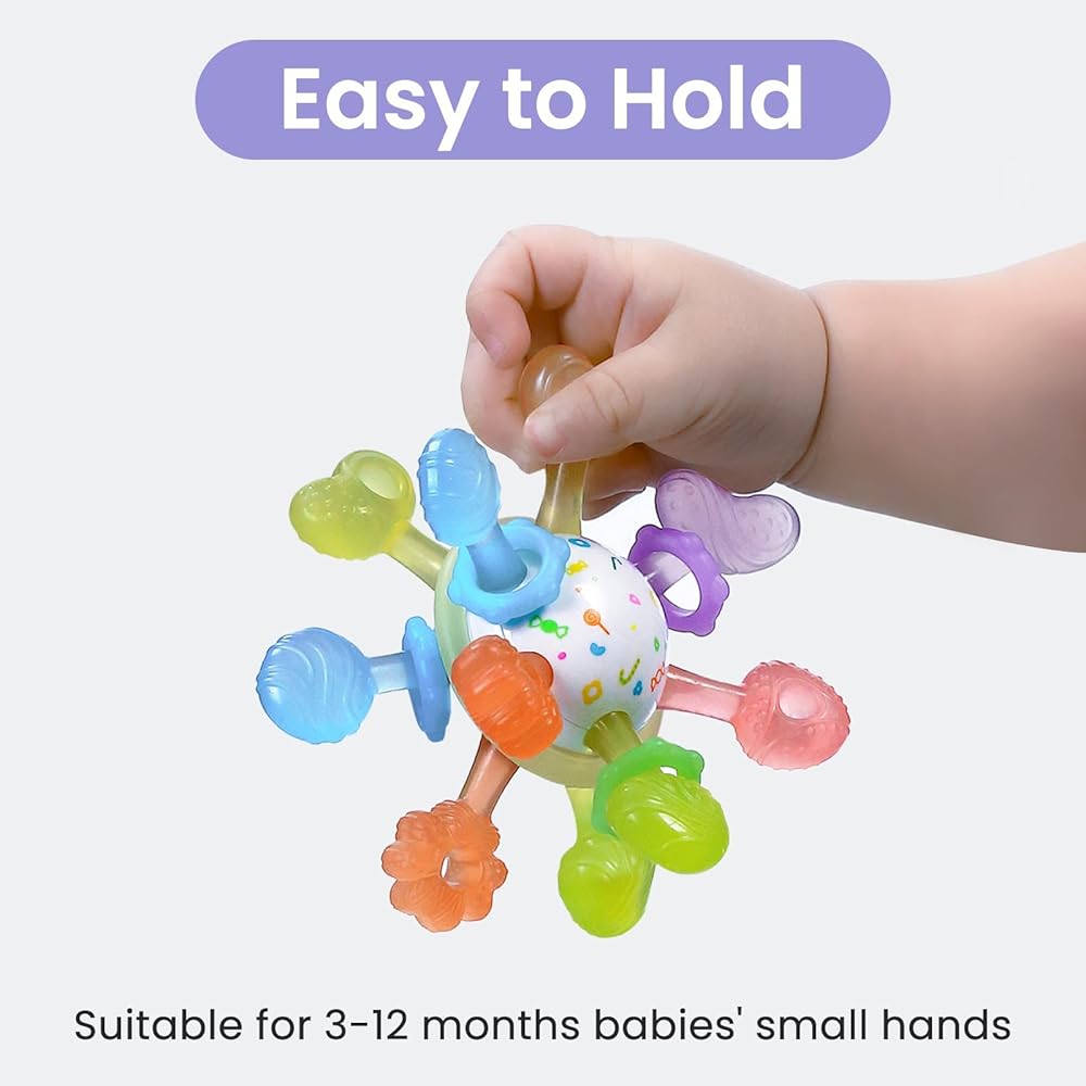 【سهلة الحمل】تتميز عضاضة السيليكون الخاصة بنا بنقاط إمساك متعددة، مما يسمح للطفل بالإمساك بها بسهولة. بالإضافة إلى ذلك، فإن حجم المنتج مناسب للأيدي الصغيرة للأطفال الذين تتراوح أعمارهم بين 3 إلى 12 شهرًا، مما يجعله مثاليًا لطفلك ليمسكه وأقل احتمالية للانزلاق من قبضته.