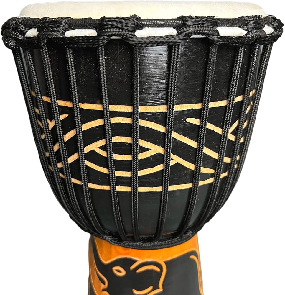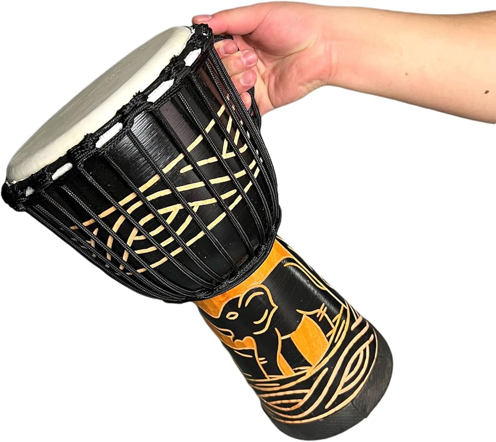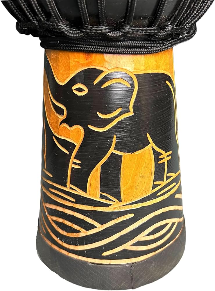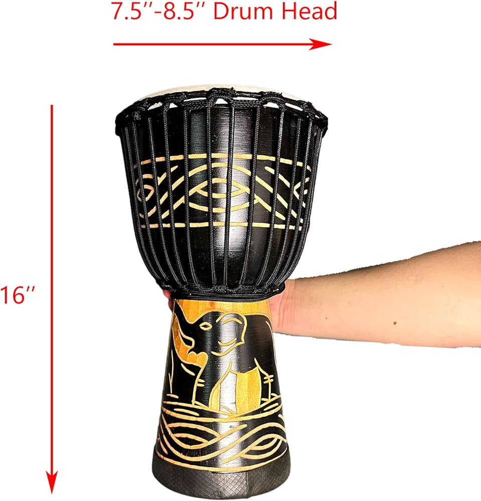 The drum body is made of peach blossom core wood, without splicing and synthesis, which makes the drum body resonate greatly and the timbre more attractive. Each product is hand carved and painted by the artist, with random patterns.