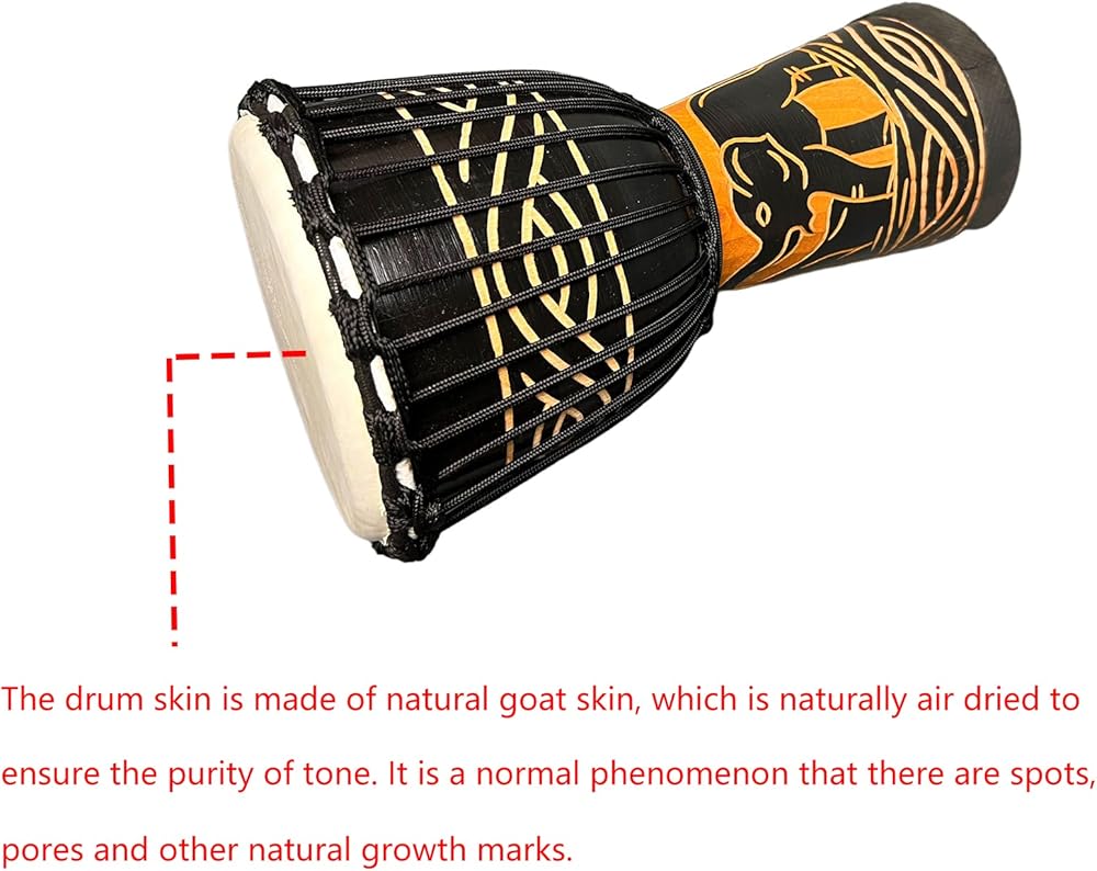 The drum skin is made of goat skin without any chemical treatment. The leather is tough and elastic. Because it is handled by hand, if there are spots, pores, yellowing, and uneven colors, it means it is pure old goat skin, which is a normal phenomenon, and you don't need to worry.