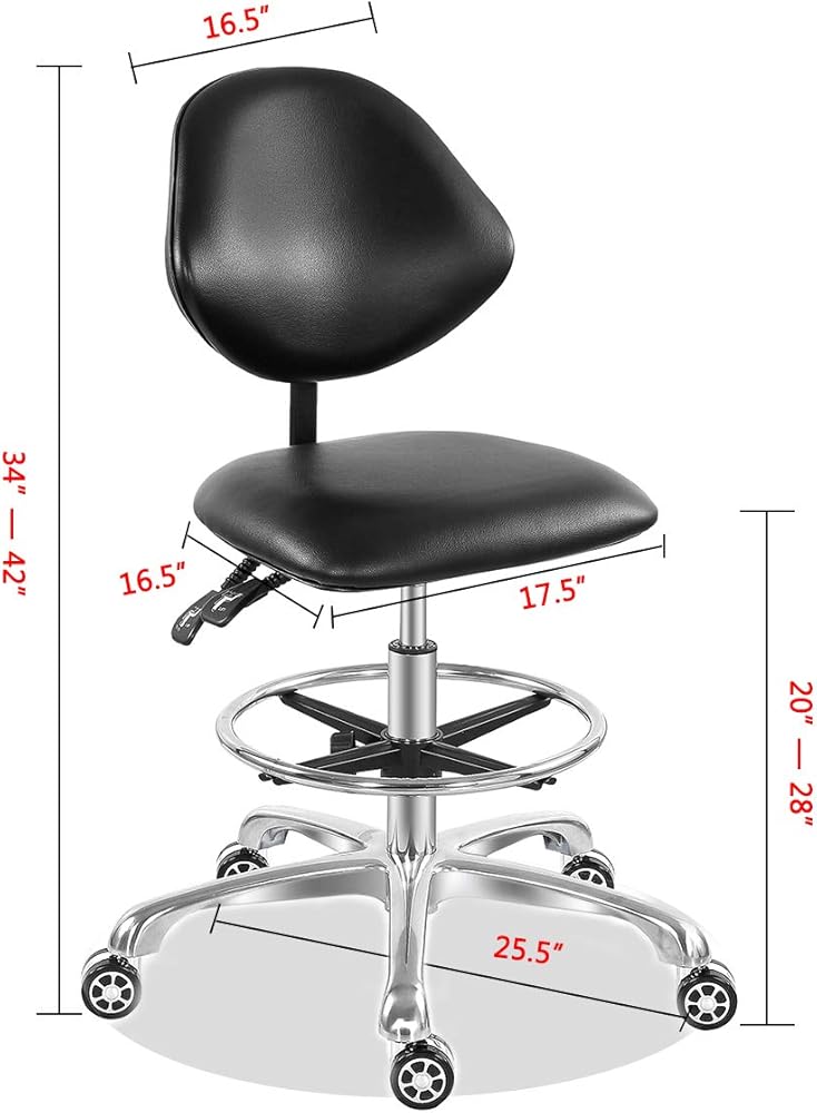 • Larger adjustable height & solid footrest:The adjustable height of this rolling stool is 20-28 ",the equipped footrest allows you to use the chair in a higher position.