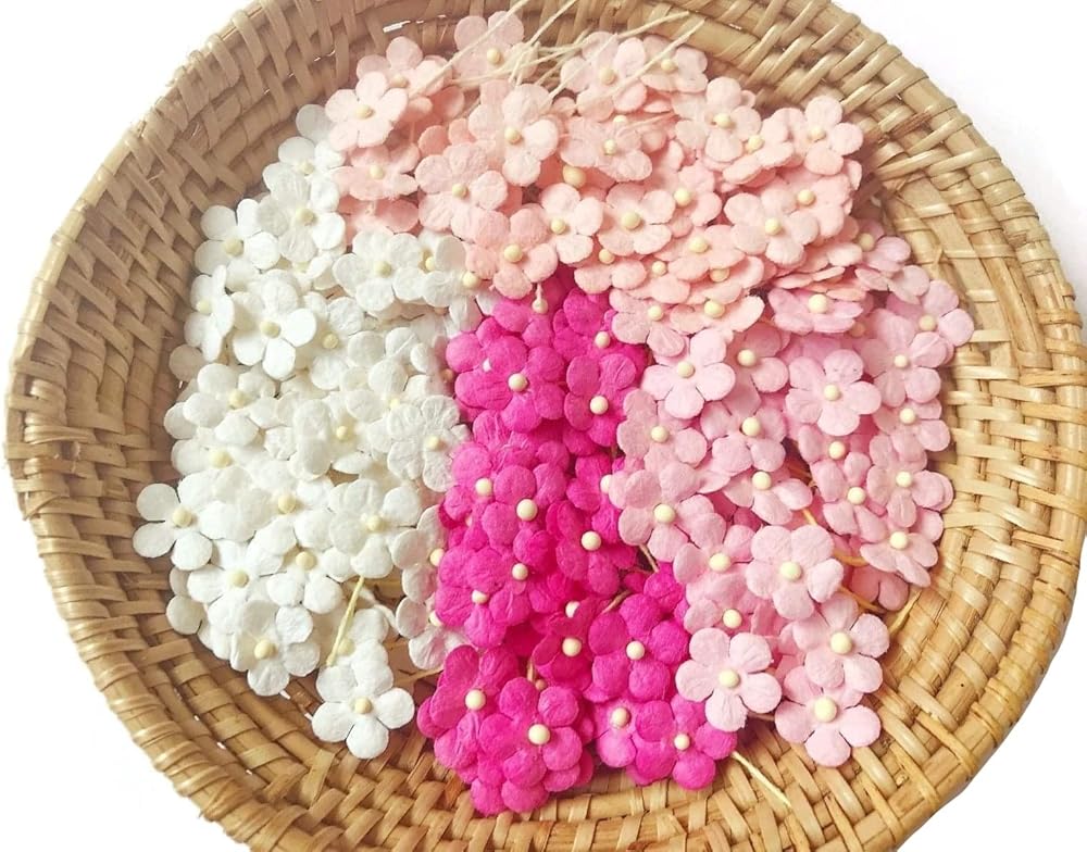 The mulberry paper flowers is supported by embellishment with Thread stem Using for Crafts, Bouquets, Scrapbooks, Decorations, Greeting cards, Wedding gifts, Seasonal gift, Headband, hair bows, etc.