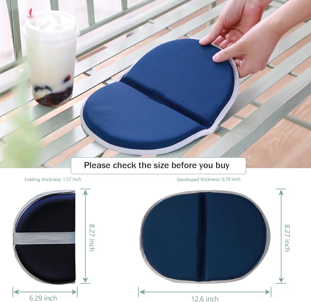Portable Folding Small Seat Cushion: Folding design, easy to carry and save space, when you need to sit down and rest, you can put it on the steps or chairs. The seat cushion is not only non-slip but also moisture-proof, which can protect your trousers from being clean and dry. It is a must-have product for those who go out. Product parameters: Material: polyester fiber Color: gray, navy, blue Size: unfolded: 12.98.30.8 inch (folded: 6.38.31.6) Weight: 2.9 oz