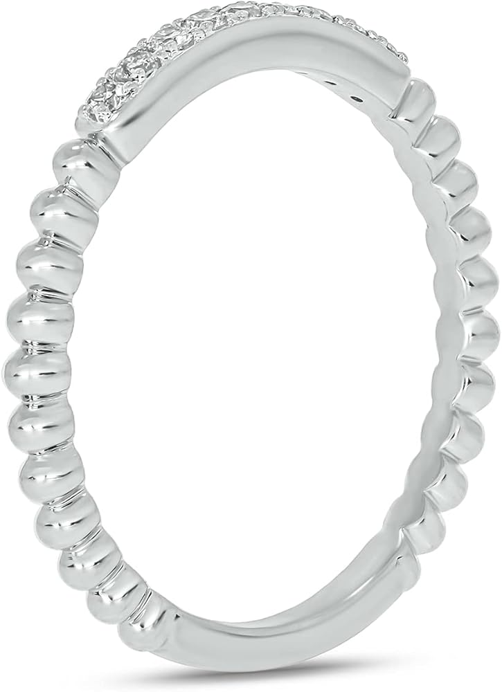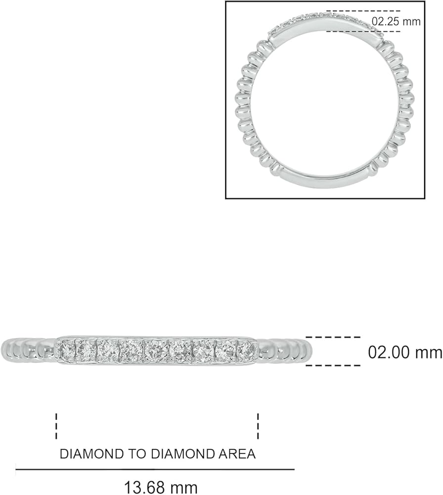 حزام الذكرى السنوية الماسي 1/10 قيراط في ثلاثة خيارات معدنية: تسعة ألماس حقيقي يسلط الضوء على حزام التراص النسائي هذا. تم تزيين مجموعة الألماس الدائرية الأصلية ذات القطع الدقيقة بتفاصيل نمط الخرز على الساق. يمكن ارتداء هذا الخاتم النسائي بمفرده، كخاتم زفاف أو ذكرى سنوية أو مع حلقات أخرى لخلق تأثير مذهل. متوفر مطلي بالذهب الأصفر أو مطلي بالذهب الوردي أو الفضة الإسترلينية عيار 925، كما أن طلاء الذهب عيار 18 قيراط 1 ميكرون ذو نوعية جيدة. إجمالي وزن الألماس هو 1/10 قيراط