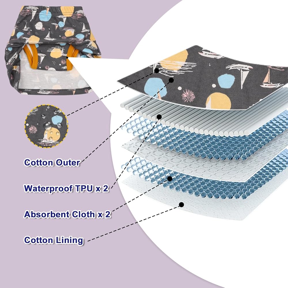 نسيج قطني فاخر للراحة: تنانير الحفاضات القطنية مصنوعة من مواد ناعمة مع 6 طبقات من الحشو. الطبقة الخارجية من القطن؛ الطبقة الوسطى-100% بولي يوريثان مقاوم للماء؛ طبقة داخلية من نسيج قطني ناعم وذو قدرة على الامتصاص. تضمن تنورة الحفاضات القماشية المريحة هذه الراحة والنعومة، وتوفر رعاية لطيفة لبشرة الطفل.