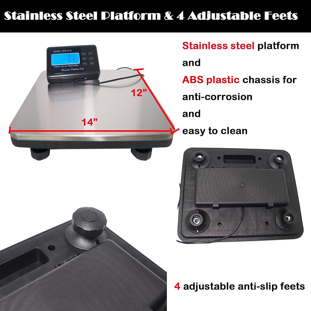 منصة من الفولاذ المقاوم للصدأ و4 أقدام قابلة للتعديل: منصة من الفولاذ المقاوم للصدأ مقاس 14 × 12 بوصة وهيكل بلاستيكي ABS لمقاومة التآكل وسهل التنظيف؛ تم تصميم الأرجل الأربعة المضادة للانزلاق القابلة للتعديل للحفاظ على التوازن في الأسطح المختلفة، مما يجعل القراءة أكثر دقة، كما يحمي الأرضية من التلف.