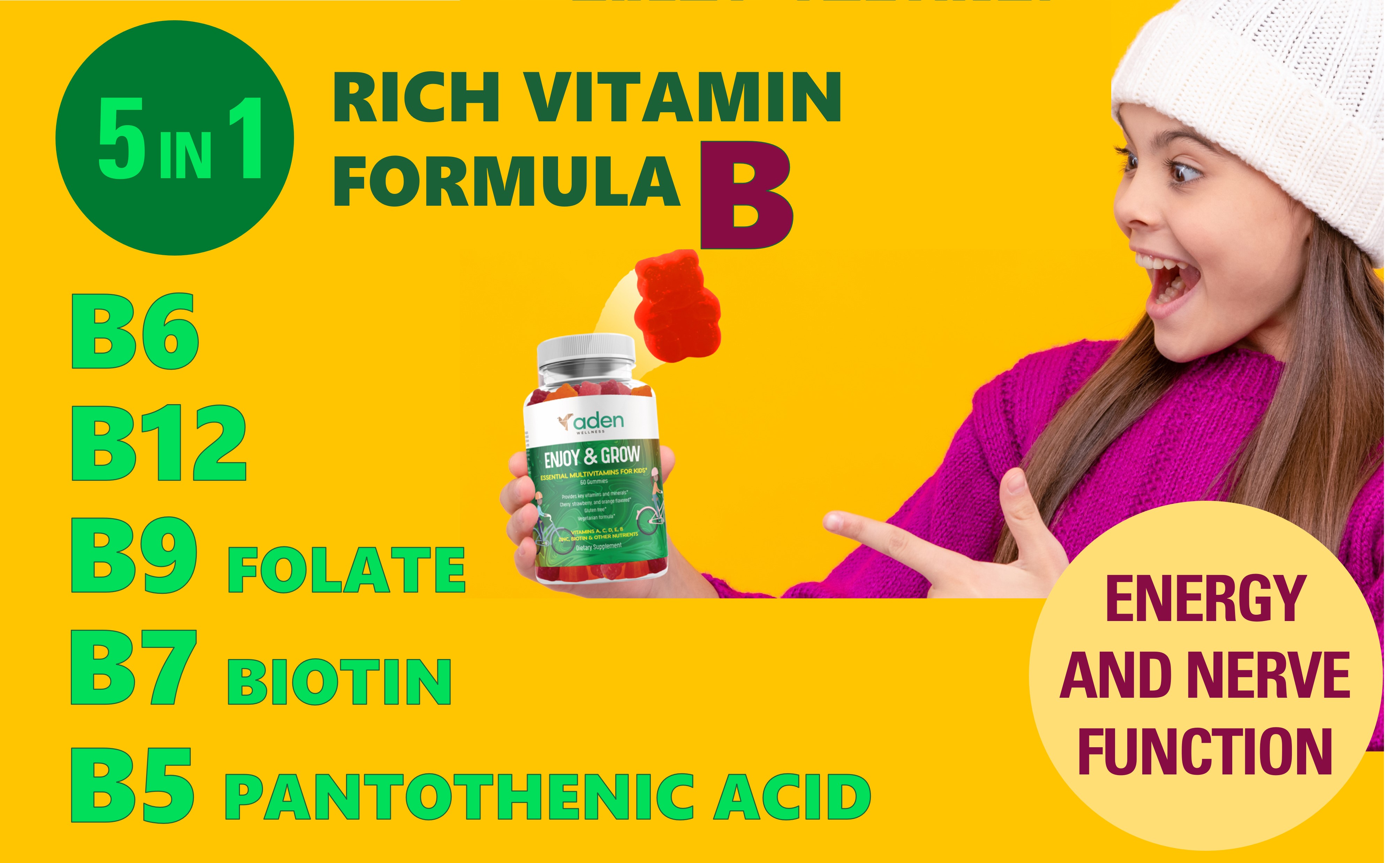 مليئة بالطاقة والحيوية - حافظ على نشاط أطفالك وقوتهم كل يوم مع الفيتامينات المتعددة اللذيذة للأطفال. كل واحدة منها مليئة بفيتامينات ب، اللازمة لإنتاج الطاقة ومحاربة التوتر.